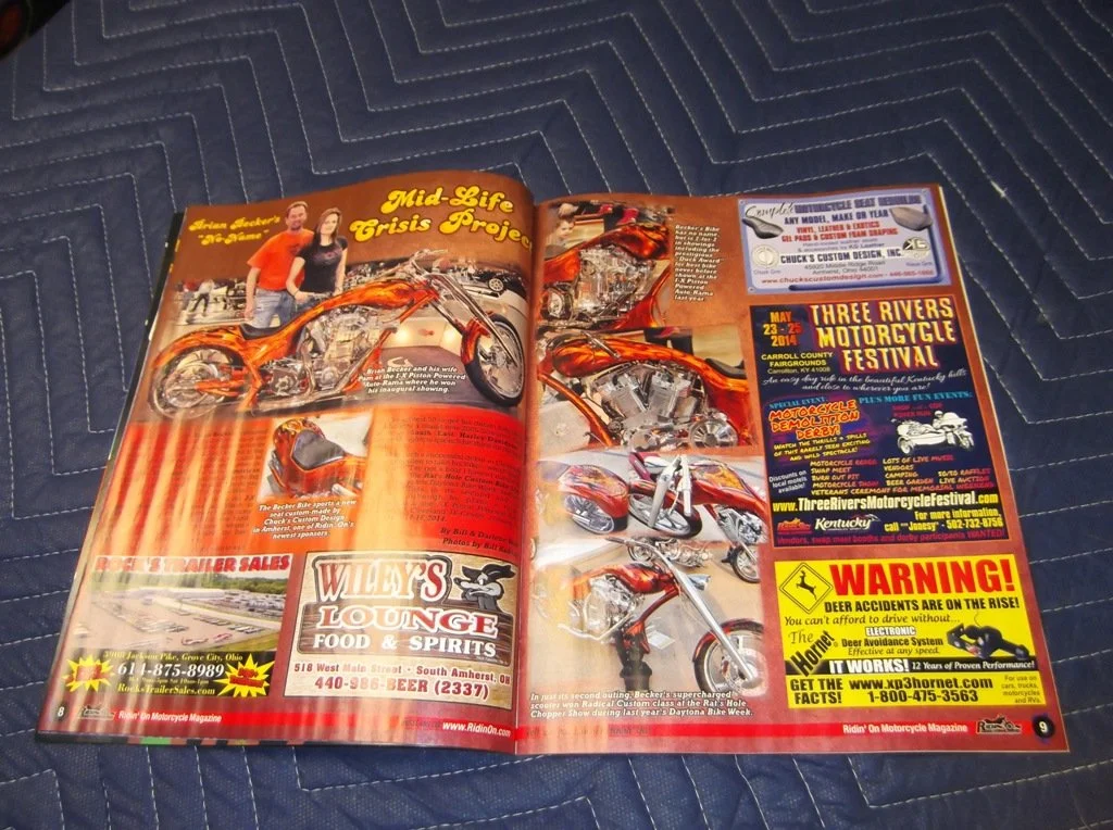 Interiors done on featured cars for Penfound Design. To see more visit www.penfounddesign.com. Check out the motorcycle seats and hand tooled leather seats featured in ridin on magazine December 2013 issue. Cover and story of best radical custom bike Rat`s Hole in Daytona Biketoberfest, Duck award Winner 2013 Power Piston Show. Hand tooled leather seats. For more info check out the 2014 March issue at www.RidinOn.com.